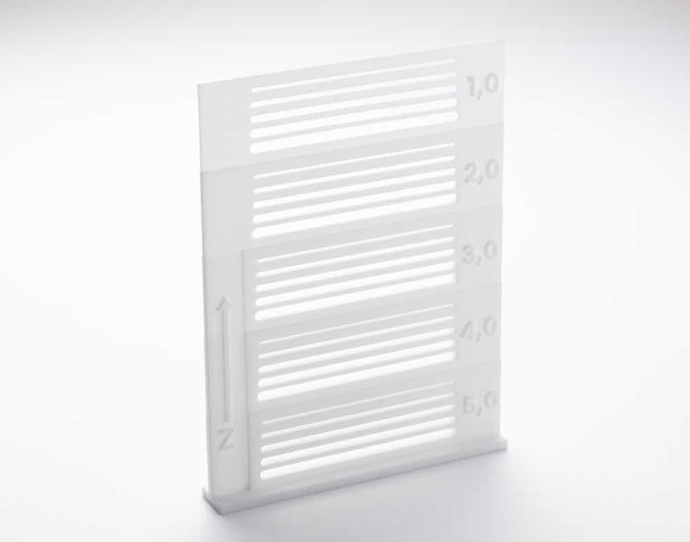 Bei der Entwicklung von Stiften für SLS ist Vorsicht geboten, da die Stifte sehr dünn sind. Wenn die Stifte zu dünn sind, sind sie möglicherweise zu zerbrechlich und brechen bei der Nachbearbeitung. Je länger der Stift ist, desto größer ist das Risiko. Eine Vergrößerung des Durchmessers verleiht einem langen Stift mehr Festigkeit. Kürzere Stifte können dann einen kleineren Durchmesser haben.